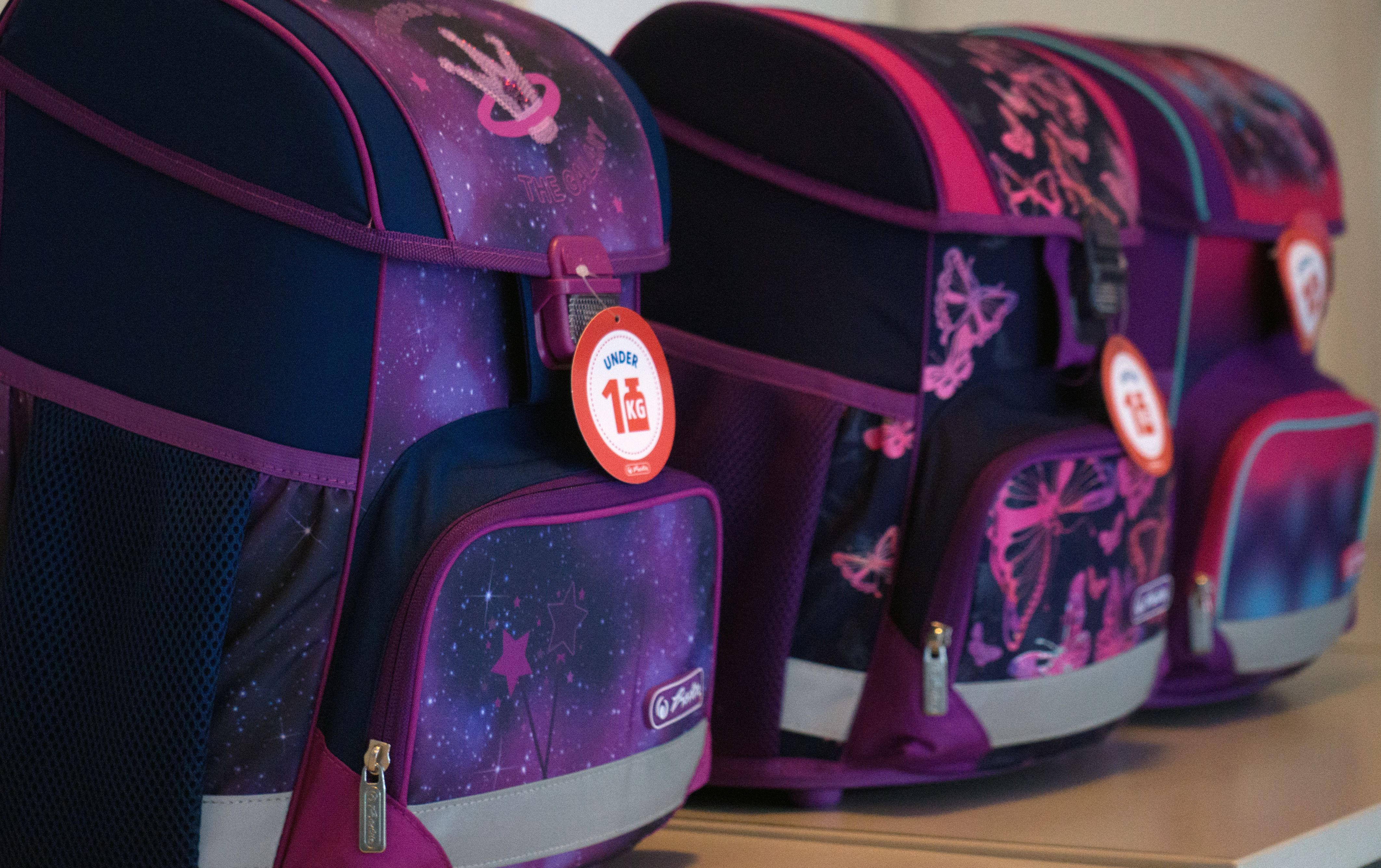25 Schulranzen, gefüllt mit Federtasche und Turnbeutel wurden an Kinder ausgereicht