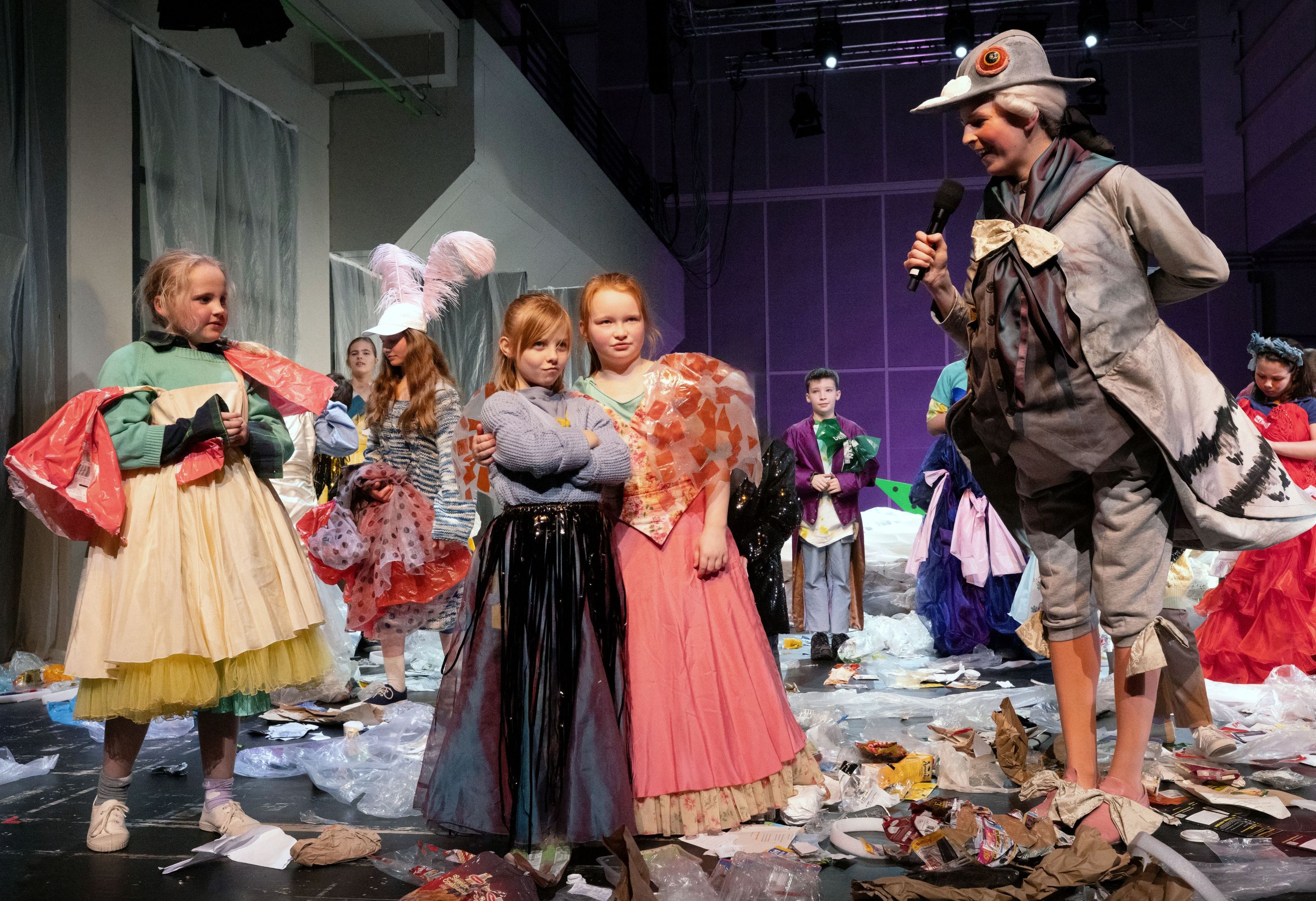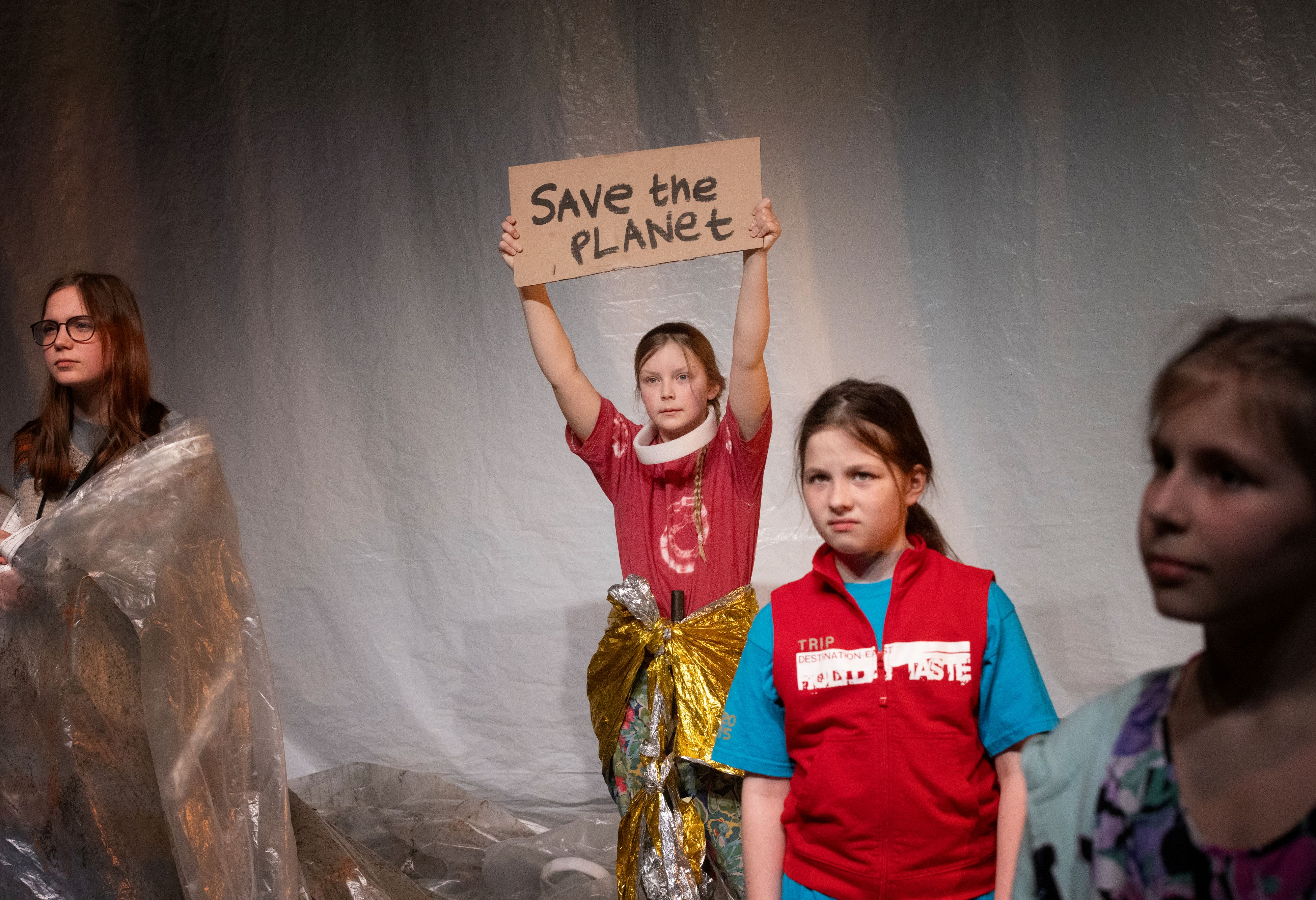 Ein Musiktheaterstück rund um das Thema Müll bzw. den damit verbundenen Kreisläufen. Ein elementares Anliegen ist dabei die Einbeziehung von Kindern und Jugendlichen aus dem Quartier (Großer Dreesch, Schwerin), die sich diesem Thema und der Arbeit in einer Musiktheaterproduktion im Rahmen von professionell angeleiteten Workshops und Projekttagen sukzessive nähern. Foto Silke Winkler