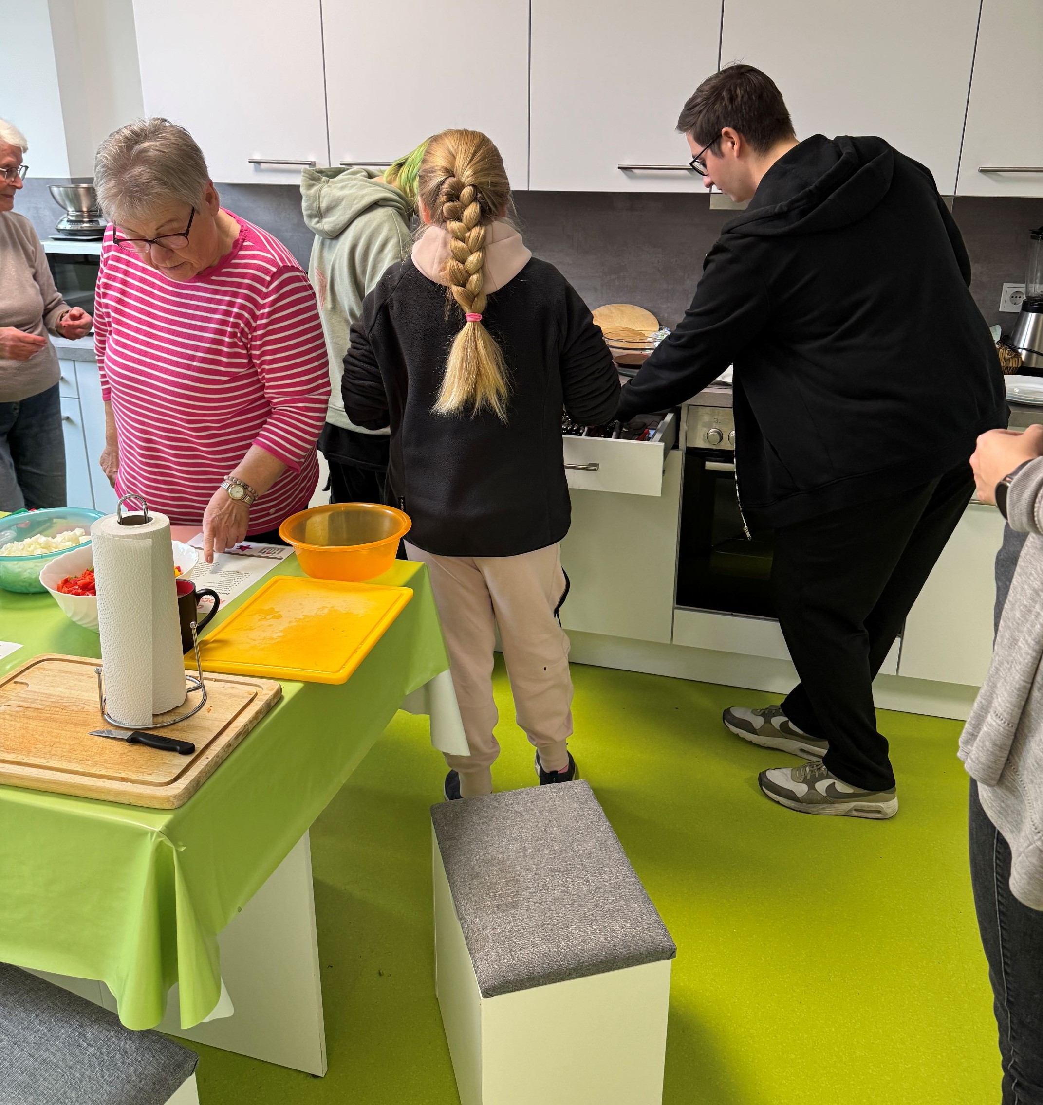 01.10.2025 – 31.12.2025 3 Projekte - Hand in Hand e.V. - Schwerin Beim gemeinsamen Kochen, Keksebacken und Herstellen von Meisenknödeln entstanden generationenübergreifende Begegnungen, Austausch und Vertrauen zwischen Jung und Alt. Niedrigschwellige Aktivitäten förderten praktische Fähigkeiten, persönliche Gespräche und nachhaltige Kontakte, stärkten das Miteinander und machten den Stadtteil als lebendigen Begegnungsraum erfahrbar.